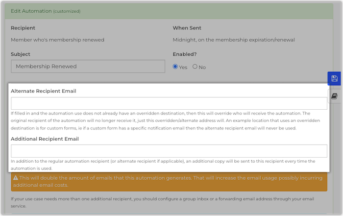 We've added options to add an alternate or additional recipient to any of the email automations available in your Hive, which can be found in your admin dashboard by going to Communicate >> Automate Emails/Texts. Please note that these new setting are only available for email automations. Check out the updated Automations Overview support article for more details.