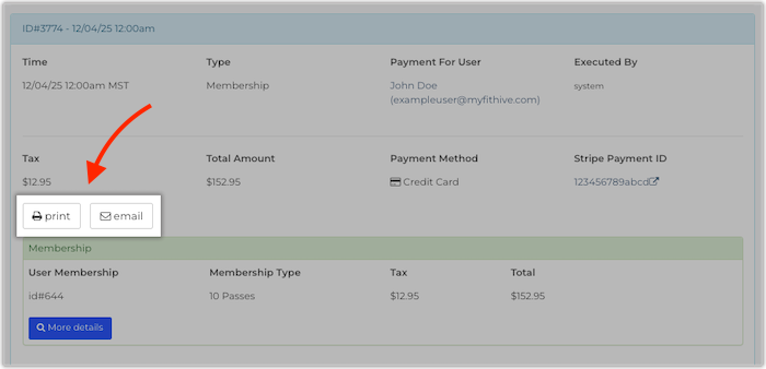 We've added the options for admins to manually print and/or email individual payment receipts as needed. To access this, open up the user's profile in your admin dashboard >> navigate to the Payments tab >> then click on the applicable payment, which will provide you with its full details and the options to print or email the corresponding receipt. You can also check out the updated How to Navigate a User Profile support doc for more info.